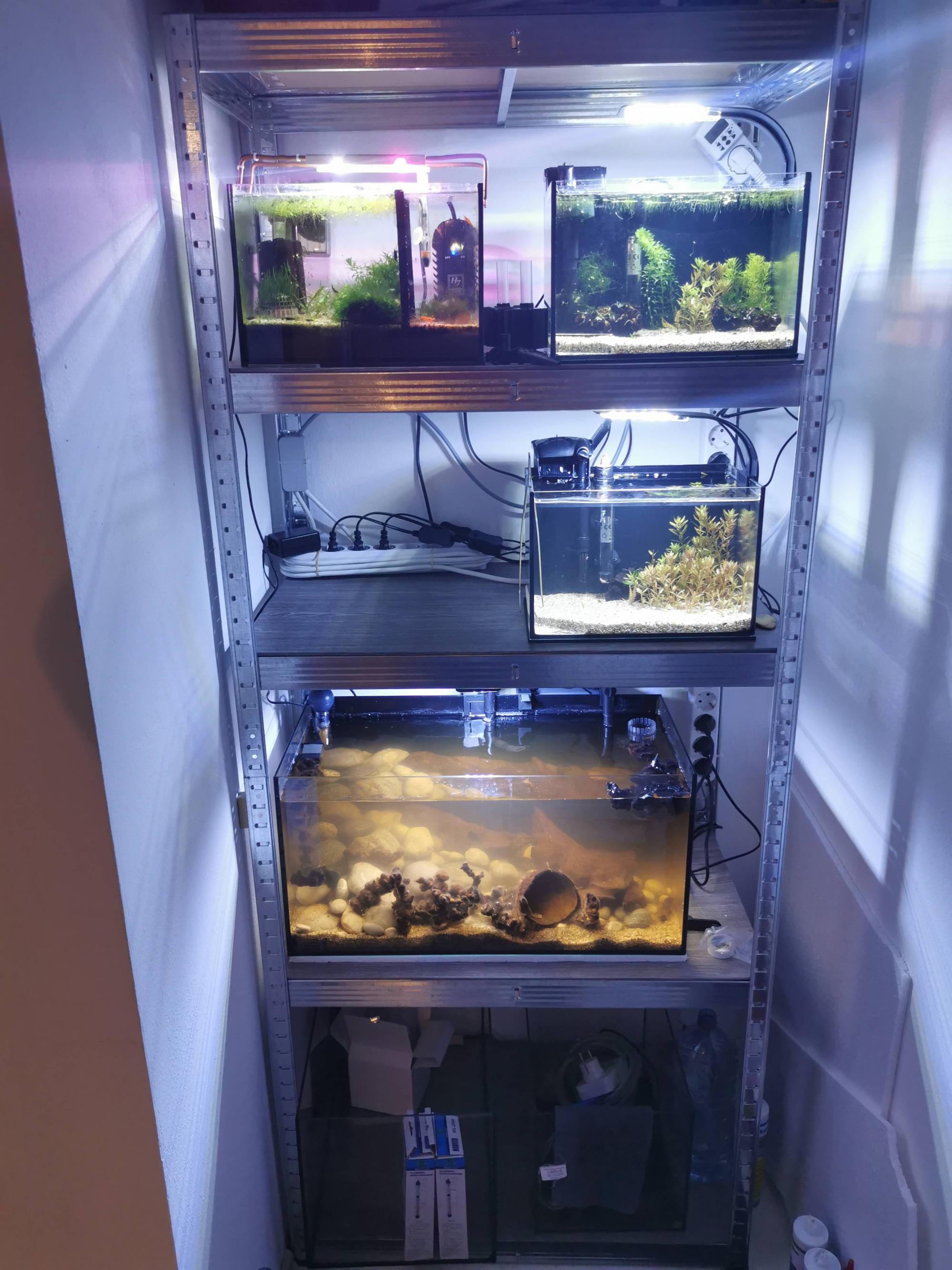 Da ne ostanem duzan i ovde :) Mali update! Dodat jos jedan akvarijum na policu a 240L dopunjen sa dragonstone i potopljen. Za sada samo vrti vodu i tako ce biti vrv do sledeceg vikenda kada planiram presadjivanje biljaka.