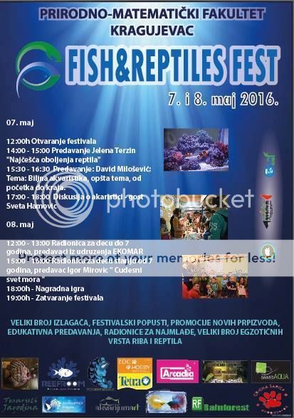 Obaveštavamo vas da će se i ove godine na istom mestu u periodu od 7. i 8. maja održati festival akvaristike i teraristike koji od sada nosi naziv “Fish&Reptiles Fest”. Nakon uspešnog starta zadovoljstvo nam je da vas obavestimo da se manifestacija ponavlja ove godine sa većim brojem izlagača, predavača i sadržaja.