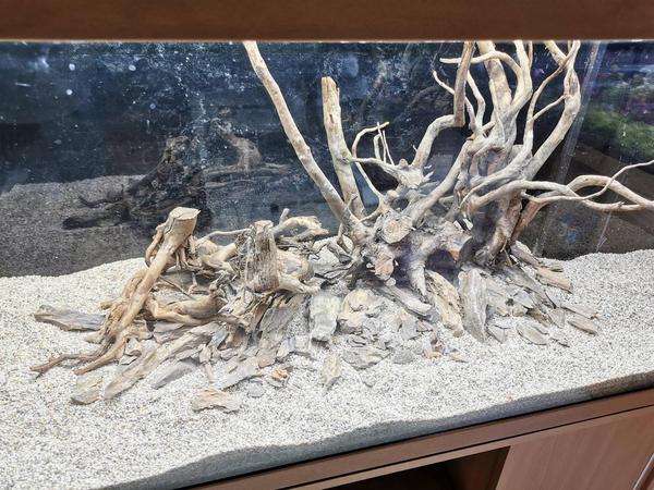 Da ne ostanem duzan i ovde :) Mali update! Dodat jos jedan akvarijum na policu a 240L dopunjen sa dragonstone i potopljen. Za sada samo vrti vodu i tako ce biti vrv do sledeceg vikenda kada planiram presadjivanje biljaka.