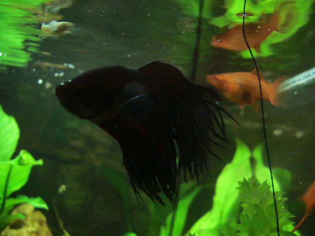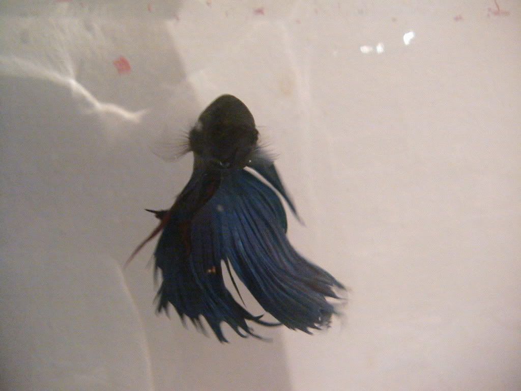 ovo tu je prva betta,običan veiltail koji je divan,plavi sa crvenim ventralnim perajama (nadam se da sam dobro napisala :-[ ) i crvenom sredinom repa.