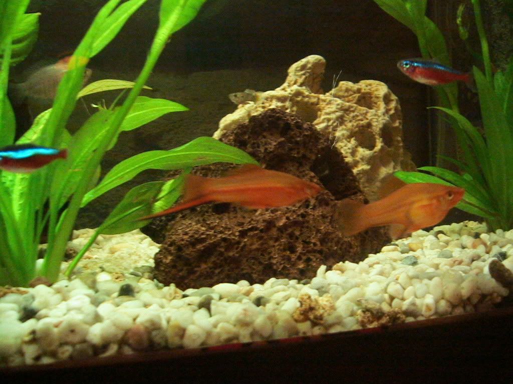 a sad sve po malo..u 65 litarcu, švertovi, hibridi guppy-endlera , pandice, ancići, colise i naravno crowntail  :)