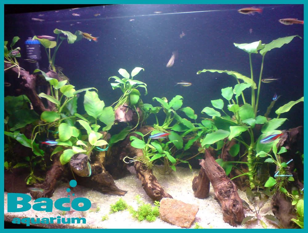 Šalim se, akvarij je odličan. Samo me malo bode u oči ovaj visoki anubias na desnoj strani. Pomaknuo bi ga ulijevo, otprilike u ravnini sa slovom O  ;)